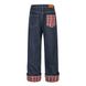 Color-Block Plaid Pocket Rolled Hem Denim Straight-Leg Men's Trendy Brand Design Sense Cuffed Niche Loose Wide-Leg Pants