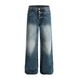 Color-Block Washed Denim Straight-Leg Pants Men's American High Street Design Stitched Loose Wide-Leg Pants