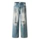 Color-Block Washed Ripped Jeans with Double Pockets Trendy Punk Vintage Dirty Straight-Leg Pants for Men