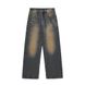 Color Block Washed Wide-Leg Jeans for Men Oversize Loose Casual Dad Pants Hip-Hop Trend Straight-Leg Long Pants