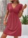 [Cotton Linen] Women's Clothing Colored Cotton Short-sleeved V-neck Design Chest Twist Waist Dress