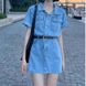 Cowboy A-line dress, female summer niche, waist cinching and slimming short skirt, short stature polo short sleeved skirt