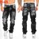 Cross Border Supply European And American New Fashion Jeans Casual Open Line Trousers Straight Men's Trousers Hip Hop Denim