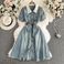 Denim Polo Collar Dress Female Split Belt Slim Design Sense Chic Temperament Long Skirt