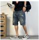 Denim shorts for men in summer, thin cut, ripped, versatile, slim fit, straight leg, trendy Korean version, five point pants