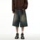 Denim Shorts Men's Retro Pants Logging Wide Leg Shorts Six Point Pants Couple Summer
