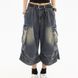 Design sense, multiple pockets, pleated workwear jeans, men's summer American loose spot washed seven quarter shorts