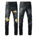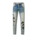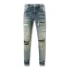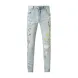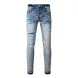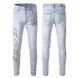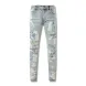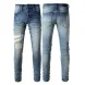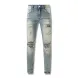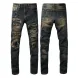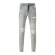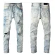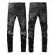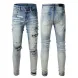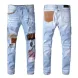 designer Stacked For Mens Baggy Tears Jean Biker Embroidered And Sewn Fashionable Perforated Pants Casual Straight Leg