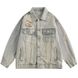 Distressed Denim Jacket - Oversized Hip-Hop Style With Embroidery & Ripped Details, Unisex Streetwear Coat For Men & Women