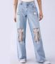 Distressed Denim Jeans Oversized Ripped Patchwork Lace-Up Pants ( Cotton Blend, Vintage Wash, Streetwear & Boho Chic, Plus Size Friendly)
