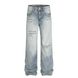 Distressed Washed Gradient Denim Men's Punk Trendy Floor-Length Frayed Vintage Wide-Leg Straight Pants