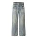 Double Waistband Jeans Men's High Street Trendy Design Sense Personality Patchwork Washed Vintage Distressed Casual