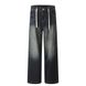 Drawstring Elastic Waist Jeans Washed White Straight Pants Men's Street Style Loose Color Block Wide Leg Long Pants