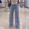 Elegant High-Waisted Wide-Leg Pants With Lace & Denim Trim - Flowy & Flattering For All-Day Comfort