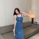 ELLE 2024 Age-Reducing Women's Retro Hong Kong Style Top Denim Strap Set Waist-Cinching Mid-Length Camisole Dress