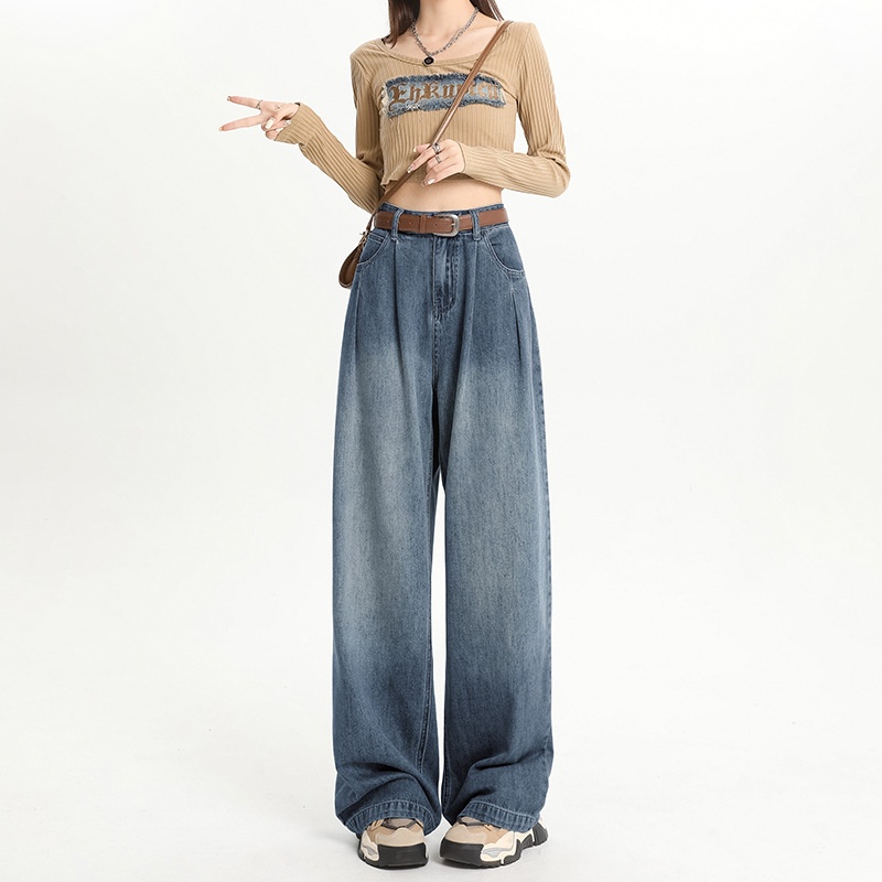 American Retro Wide-Leg Jeans for Women, Autumn Winter Spring Summer 2025 New High-Waisted Straight Loose Floor-Length Pants