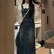 Casual Style Youthful Denim Strapless Dress for Women with Unique Design and Puff Sleeve Shirt Two-Piece Set