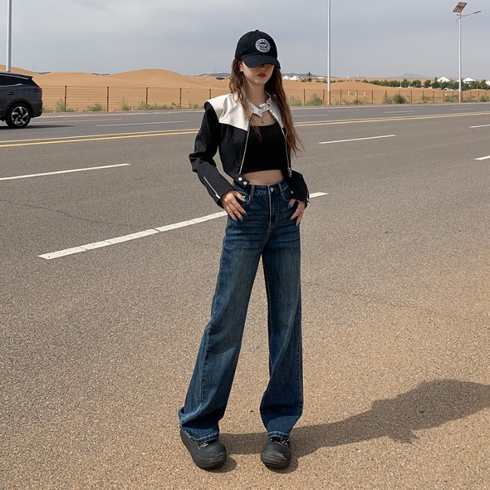 Early Autumn Straight-Leg Jeans for Women, Stretchy High-Waisted Slimming Fashion Washed Black Cigarette Pants, Slim Fit Versatile Spandex