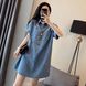 2023 Plus Size Denim Blue Dress for Women Summer New Extra Large Size Mid-Length Loose Short Sleeve T-Shirt Dress