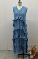 2024 Summer New European and American Cross-Border Women's Solid Color V-Neck Fashion Frayed Edge Patchwork Denim Dress
