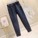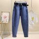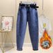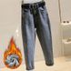 Fleece-Lined Harem Jeans for Women, Loose Straight Wide-Leg, New Autumn and Winter Warm High-Waisted Nine-Point Dad Carrot Pants, Trendy