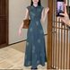New Chinese Style Retro Blue Button Short Sleeve Denim Dress Elegant and Decent Waist-Cinching Improved Cheongsam for Summer