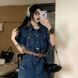 ELLE Vintage Hong Kong Style Denim Summer New Waist Slimming Sleeve Short Dress Trendy