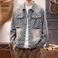 Embroidered Denim Jacket – Vintage Workwear Coat For Men (Sandstone/Light Blue, M-XXXL)
