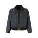 Eon Modish 25 Autumn New American Fashion High Street Stand Collar Patchwork Functional Denim Jacket Coat