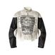 Eon Modish 25 Autumn New American Street Style Skull Digital Print Patchwork Stand Collar Leather Jacket