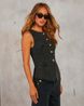 European And American Fashion New Women's Denim Two Piece Set Button Sleeveless Waistcoat Vest + Wide-leg Jeans Denim Suit Fashion