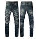 European And American Men's Clothing Jeans Men's Trendy High Street Pants Ripped Patch Leather Slim Men's Pants 1320