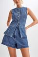 European And American Style Summer Women's Denim Two Piece Set Fashionable Casual Sleeveless Denim Crop Top + High-waisted Denim Shorts Women's Suit