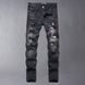 European And American Trendy Brand Fashion Personality Ripped Rhinestone Patch Jeans Men High Street Black Slim Fit