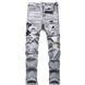 European Men's Light Blue Ripped Embroidered Jeans Men's Trendy Elastic Slim Fit American High Street Trousers