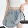 Exclusive Design Denim Skirt - Women's High Waist Pleated A-Line Skirt With Safety Shorts Slim Fit