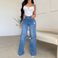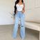 Factory Direct Ladies Jeans Long High Waist Ripped Burr Selling European And American Style Comfortable Wide Leg Pants