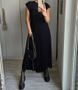 Fashion Round Neck Sleeveless Pleated Dress Women's Long Skirt