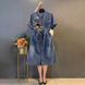 Fat Sister Spring and Summer New Large Women's Wear Heavy duty Nail Beaded Waist Thin Cowboy Dress Loose and Slim Women's Dress