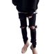 FOG style zippered cuffs, button placket, men's oversized and distressed small leg jeans