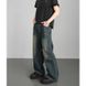 Folded Slightly Pulled Jeans Men's Straight Loose Wide-leg American High Street Pants Trendy Versatile Washed Retro Trousers