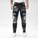Four Season Wearable High Street Trendy Patchwork Design Jeans For Men, Elastic Slim Fit Small Leg Tight Pants, Ripped Patch Blue Pants