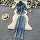 French Light Mature Style Tie Waist Short Sleeve Denim Tops Women's High Waist Slit Hip Skirt Summer Two Piece Suit