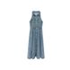 French style minimalist sleeveless denim dress for women in the summer of 2025, featuring a high-end waist cinching and slimming style with a hanging neck long skirt