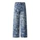 Full Print Five-Pointed Star Faded Washed Denim Straight-Leg Pants Men's High Street Trendy Vibe Distressed Ripped Wide-Leg Pants