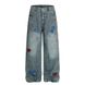 Fun Flocked Embroidery Cartoon Wide-Leg Jeans for Men Trendy Design Sense Personality Loose Straight Long Pants