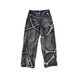 These gothic thorn-print jeans weaponize streetwear – hand-distressed hems and acid wash shadows create intentional decay. The oversized slouch fits like stolen from a grunge band’s wardrobe.