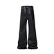 Gothic Waxed Coated Flared Jeans For Men – Y2K Streetwear Stacked Hem Wide-Leg Pants With Ribbon Accents (High Waist, Black, Distressed Finish)