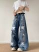 Graffiti Star Paint-Splattered Jeans – Distressed Straight-Leg Denim (Unisex Vintage Wide-Leg, Button Fly, Washed Finish, Street Art Aesthetic)