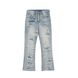 Heavy-Duty Distressed Flared Washed Jeans For Men Trendy Loose Wide-Leg Pants High Street Casual Trousers